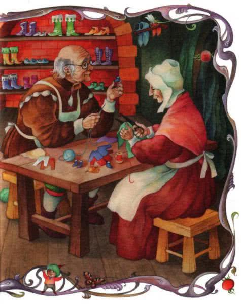 История о бедном сапожнике, к которому каждую ночь приходят маленькие человечки и исподволь шьют сапоги из приготовленной им кожи. Благодаря их помощи, сапожник становится богатым. В благодарность он с женой шьет для человечков одежду, после чего они исчезают навсегда, оставив ему счастье и удачу.